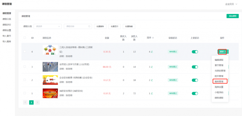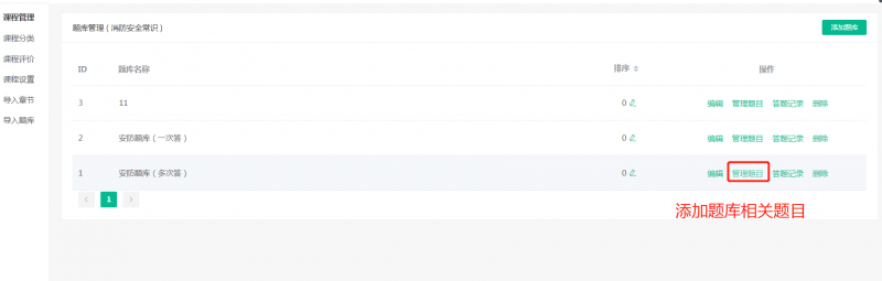路径:后台 -> 课程 -> 某课程 -> 更多 -> 题库管理