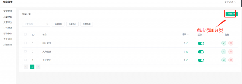 路径:后台 -> 内容 -> 文章分类 -> 添加分类