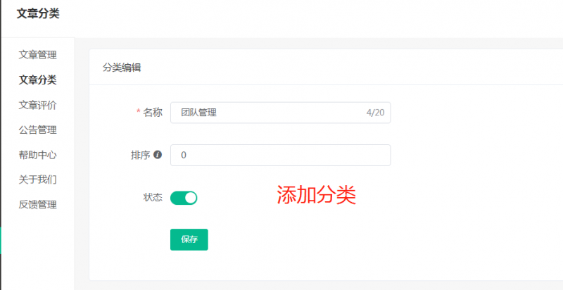 文章分类路径:后台 - 内容 - 文章分类 - 添加分类